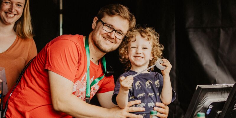 Jannis, Helfer Ich bin seit vielen Jahren ehrenamtlich als Techniker dabei – mittlerweile ist mein kleiner Sohn mein bester Unterstützer und wächst völlig selbstverständlich in die Festfamilie hinein.